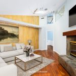 Ascend a skylighted staircase of the reverse floor plan to a light-filled and spacious living area. A double-sided wood-burning fireplace is shared by the living room and den. The culinary center will satisfy the pursuits of the resident gourmand with abundant cabinets and voluminous stone counters that provide space to create, and invite others to participate. Oversized windows frame captivating vistas. Two view balconies provide an opportunity to step into nature to stargaze or listen to waves crashing on the beach below.