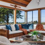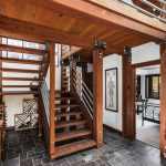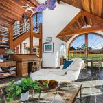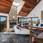 The upper level is accessed by an open staircase constructed of raised-grain fir and custom metalwork. The living areas are open and airy with panoramic views, warmed by a wood burning fireplace and passive solar heat from the south-facing Palladian windows. Tucked away is the primary bedroom with bath en suite and walk-in closet. A wrap around observation deck is shared by the living area with primary suite.