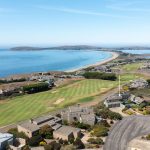 Incredible vistas are showcased from this custom, ultra-luxe contemporary home. While gazing across a gently rolling fairway of the community golf course, the panorama includes Bodega Head and Seal Rock, whitewater on Doran Beach, the Pacific and bay, as well as coastal Marin landmarks. The spacious open floor plan makes for gracious living and is anchored by a massive stone-clad wall that hosts a wood-burning fireplace. Floor to ceiling windows frame captivating views of the Sonoma coast with its abundant wildlife. The kitchen is made for entertaining, offers great views, and has access to a wind-protected balcony, perfect for grilling or to enjoy morning coffee. The very private primary bedroom with bath en suite is accessed by a sky bridge overlooking the heated pool, enclosed patio and sun deck with spa tub. Two lower level guest bedrooms, each with baths en suite, enjoy access to a patio with golf course and blue water views. Muti-zone radiant floor heating, an office, and a three car garage add to the appeal of this truly unique landmark residence. This extraordinary abode enjoys convenient access to the clubhouse of this oceanfront community which offers amenities that include a restaurant and bar, gym, sauna, heated pool, tennis, bocce, basketball, and beach trails.