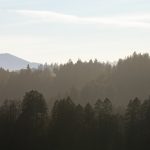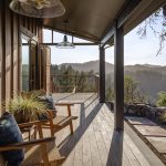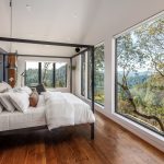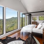 - Double atrium door with balcony railing offers expansive northeasterly views of forested hills