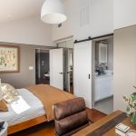 - Abundant closet space with custom organizers concealed by coordinating sliding barn-style doors