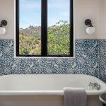 - Durvit mini sink with waterfall faucet and designer tile backsplash