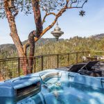 - Two sets of 7’6” trifold doors open to view decks and hot tub